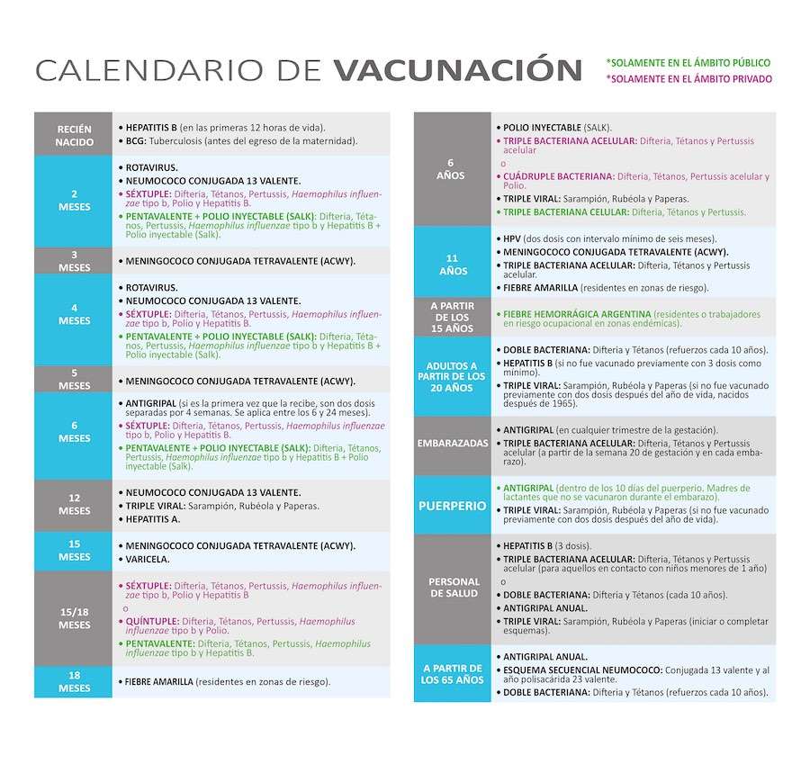• Aplicación de vacunas optativas fuera del calendario nacional obligatorio.